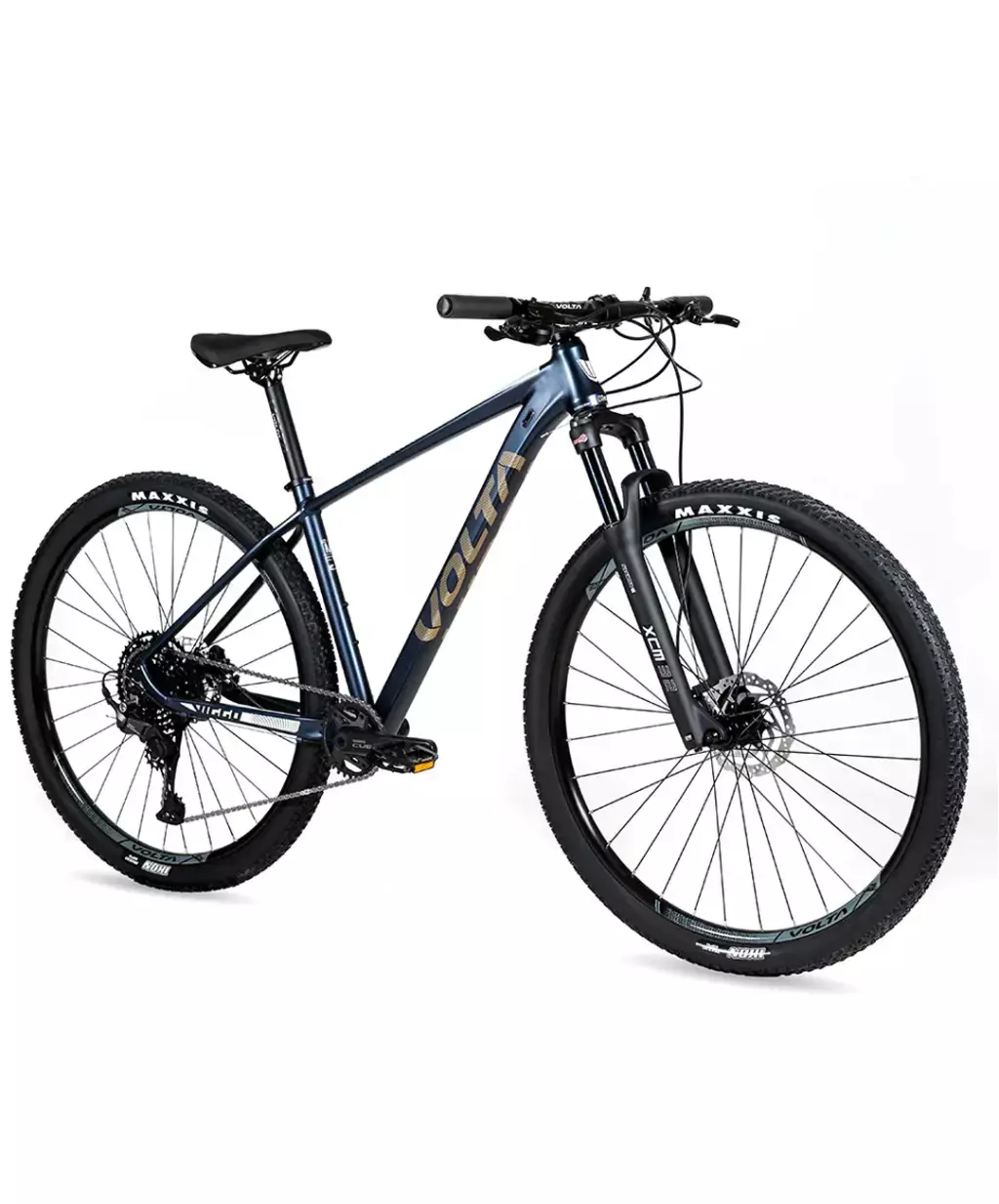 CUADRO VOLTA MTB VIGGO Gen3, Aluminio X6 Ultraligero, tubería hidroformada, Geometría XC, Cableado interno ICR, Frente cónico THT, Soldaduras pulidas SWT SUSPENSIÓN Horquilla SR SUNTOUR XCM32 100mm Bloqueo remoto - VOLTA Exclusive Edition ENGRANAJE MONOPLATO SHIMANO CUES U60001 32X170MM PIÑÓN 10C CASSETTE SHIMANO CUES LG300-10 11-48T CAMBIO CAMBIO INDEX SHIMANO CUES U6000 10/11VEL SHADOW+ MANIJAS MANIJA DE CAMBIO INDEX SHIMANO CUES U6000 10VEL DER FRENOS HIDRÁULICO SHIMANO MT200 160/160 LLANTAS DOBLE PARED 29X18X25 32A TR VOLTA MAZA DELANTERA MAZA NEGRA DE ALUMINIO A RULEMAN MAZA TRASERA MAZA NEGRA DE ALUMINIO A RULEMAN CUBIERTAS IKON 29 2.2 WIRE BLACK AHEAD MTB ALUMINIO 28,6*80*31,8 VOLTA MANUBRIO RECTA MTB 31,8X720 NEGRO VOLTA. PORTASILLA ALUMINIO DOBLE AJUSTE 31.6X350MM VOLTA ASIENTO MTB ANTIPROSTATICO 255X150 VOLTA DIRECCION J.DIRECCION INTEGRADO 28,6/41-52/30MM C/RULEMAN |